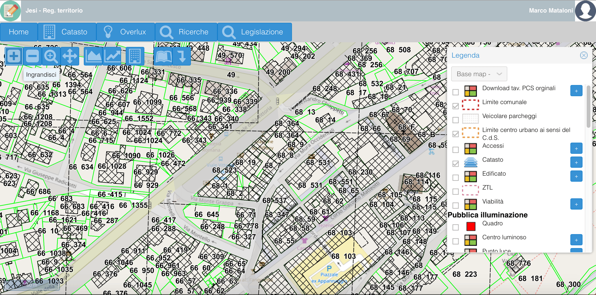 Catasto: modulo dedicato al tema catastale. E' possibile eseguire ricerche attraverso le varie chiavi disponibili e mappare su cartografia i risultati delle ricerche. E'