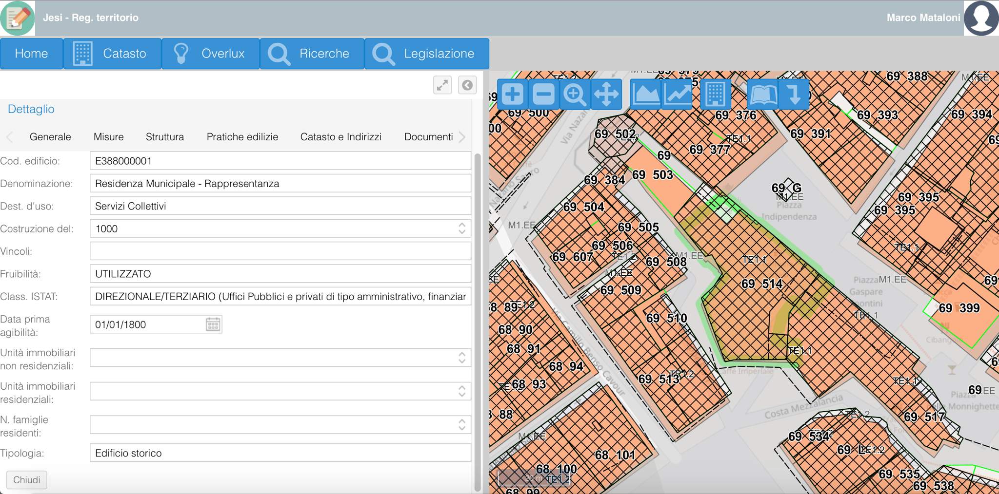 possono essere relazionate informazioni quali quelle catastali, la toponomastica, gli immobili, le pratiche edilizie, le planimetrie. L'operatore è in grado di eseguire autonomamente nuovi